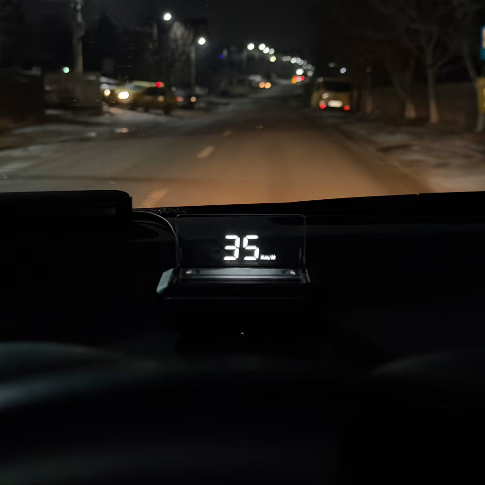 Noar HUD OBD2 este un afișaj digital universal de tip Head-Up Display care proiectează informațiile esențiale direct pe parbriz, ajutându-te să conduci mai sigur și mai confortabil. Dispozitivul se conectează la portul OBD2 al mașinii și preia datele în timp real din sistemul vehiculului, oferind o afișare clară și stabilă, fără a distrage atenția de la drum.